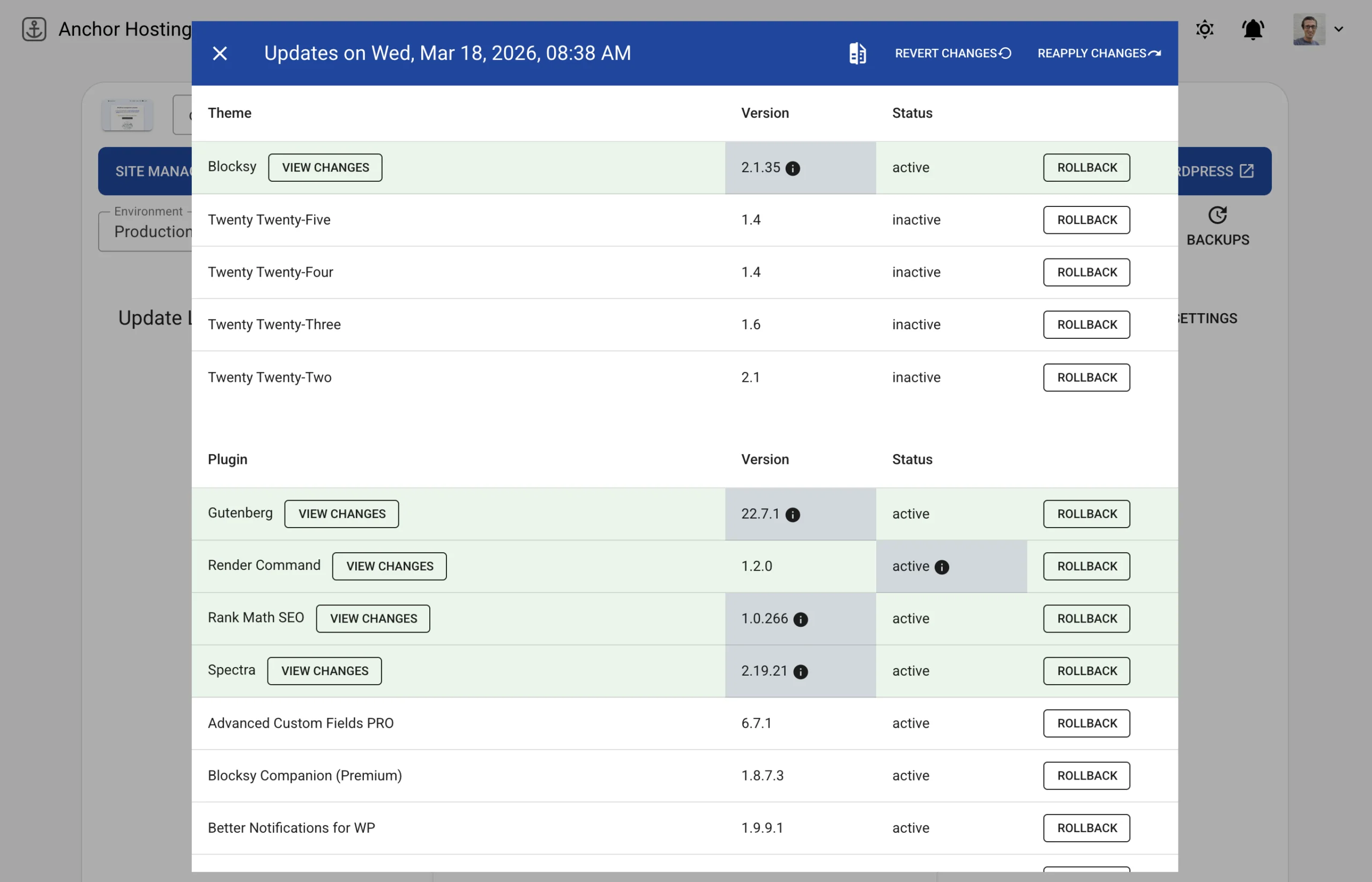 Plugin, theme, and core updates run on schedule. Nightly backups to redundant storage. All hands-free.
