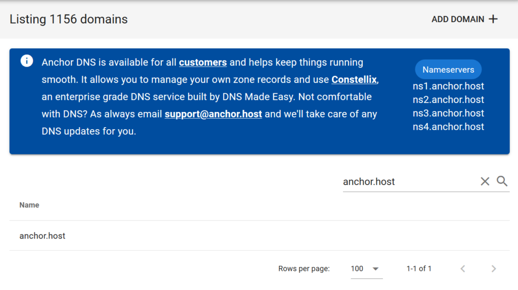 Constellix is an amazing DNS provider. Literally zero performance or reliable issues. I have no reason to switch to another provider. Under the hood these branded nameservers point back to Constellix, which is a good thing. The last thing I’d want to do is host my own DNS. Anchor Hosting customers can continue to manage DNS records directly from anchor.host/account which is powered by Constellix’ API.