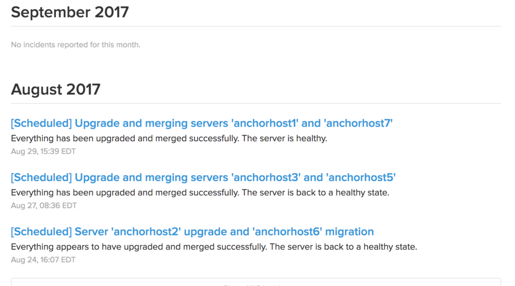 In August, a number of seemingly random and unrelated instability issues came up that affected most of my dedicated WP Engine servers. WP Engine doesn’t list pricing for their dedicated products, so for the sake of this writing let’s just say they have multiple levels of servers, each with high capacity. At P1 you can host around 100 websites. At P2 you can add some more. At P3 you can add some more.
