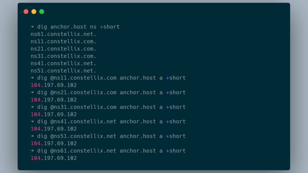 With the nameservers known, we can query directly to see which IPs the nameservers are returning.
