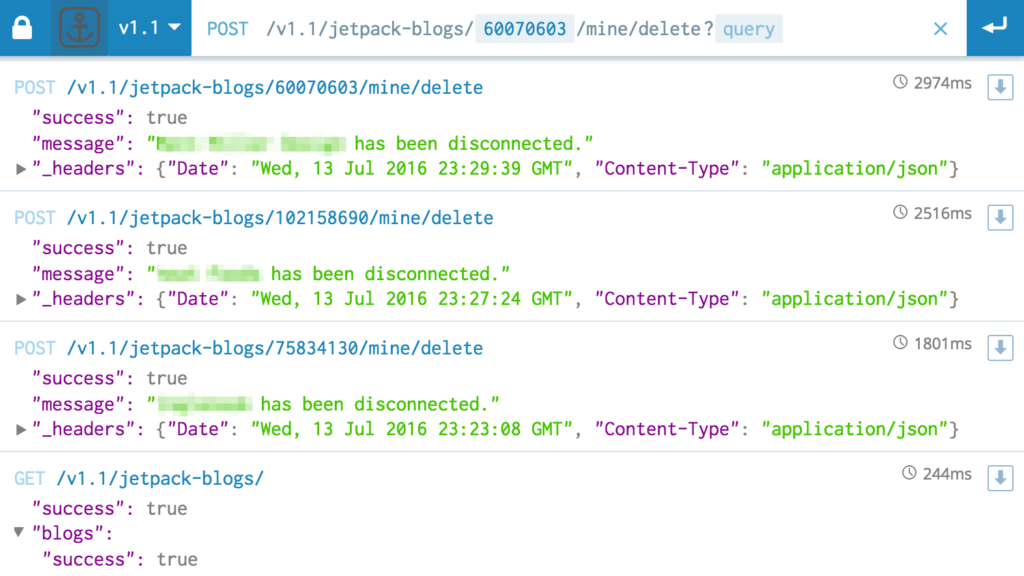 If you’ve ever connected a WordPress website to Jetpack, you have access to use the WordPress.com API console. It’s actually quite powerful. Everything from pulling stats to listing users. A simple task like disconnecting Jetpack requires two API calls.