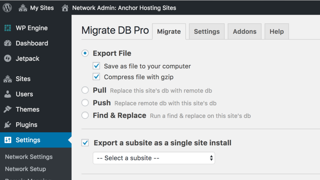 Extract the database using Multisite Tools Addon for WP Migrate DB Pro