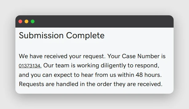 Lee and his colleagues worked diligently at challenging the transfer. They supplied the correct name of the person listed on the domain. They supplied that person’s drivers license as required. They also supplied the correct business documentation as listed in GoDaddy’s own requirements. Every time they submitted a request, they were told they would hear back in 48 to 72 hours.