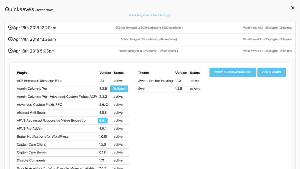 All of this functionality is available right now to all Anchor Hosting customers from the hosting dashboard. Before I explain any further, here is a quicklook at Quicksaves.