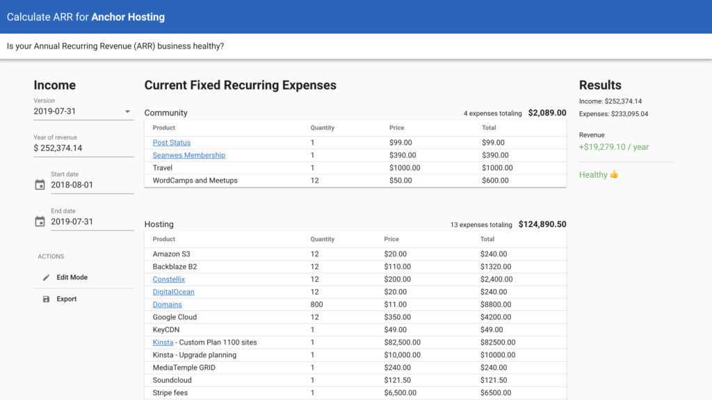 I meant what I said in βOpen Source All Of The Things πβ. Today I’m excited, maybe a little scared, to announce I’m making public Anchor Hosting’s internal revenue numbers. This is made possible with a new tool I created called Calculate ARR. Take a look: https://anchor.host/calculate-arr/.