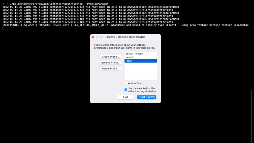 /Applications/Firefox.app/Contents/MacOS/firefox -P Proxy &
