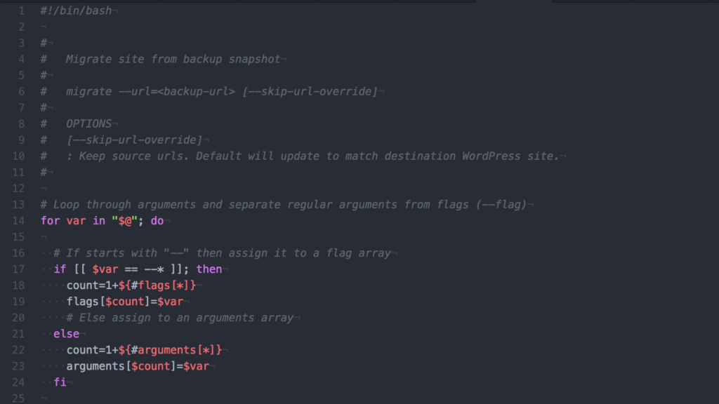 Currently the migrate.sh script works with Kinsta and WP Engine. It could easily be extended for other providers. It starts by finding a private folder to download the given backup URL. If the backup URL is in BackupBuddy’s format it converts to the publicly accessible location. It then extracts and imports files and database.