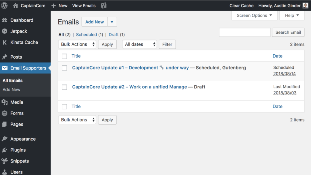 There are many options for sending out email newsletters. Recently, I was reviewing various options for sending out my CaptainCore updates. At first I was tempted to just grab entries from my Gravity Forms and send out a regular email with everyone BCC’d. However I foresee how that will quickly become problematic when manually maintaining a list of subscribers.
